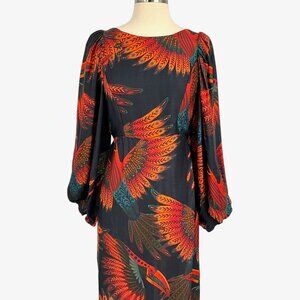 Farm Rio Arabesque Toucans Open Back Midi Dress in Multi Size S Long Sleeve