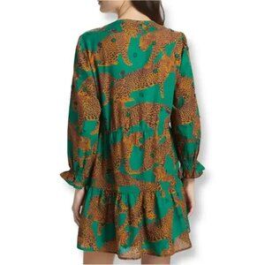 Farm Rio Artsy Leopards Long Sleeve Beaded Tassel Cotton Mini Dress