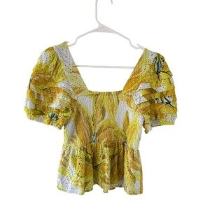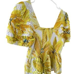 Farm Rio Azalea Yellow Smocked Eyelet Top
