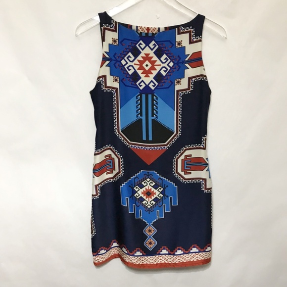 Farm Rio Aztec Geometric Print Cut-Out Back Sleeveless Sheath Dress S/P