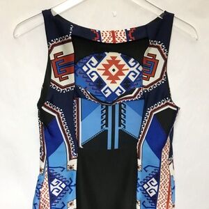 Farm Rio Aztec Print Sleeveless Dress Size S/P Blue Red Black