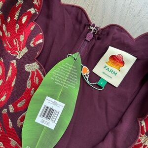 Farm Rio BOSSA Banana Metallic Midi Jacquard Dress Burgundy Red Large - w/ tags