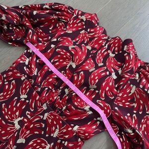 Farm Rio BOSSA Banana Metallic Midi Jacquard Dress Burgundy Red SMALL - w/ tags