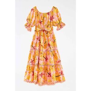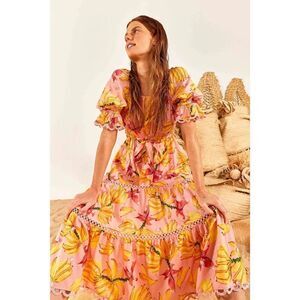 Farm Rio Banana Taste Midi Dress Pink Crochet Belted XS NEW