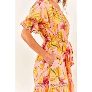 Embrace vibrant summer vibes with the BANANA TASTE MIDI DRESS from FARM Rio. This breezy, midi-length dress features an eye-catching banana print set against a playful, colorful background. With its flowy silhouette and delicate lace detailing, it's ideal for sunny days or casual outings. The lightweight fabric ensures comfort, while the stylish design enhances any wardrobe effortlessly. Perfect for warm-weather adventures, this dress adds a burst of fun and fashion-forward flair to any occasion.