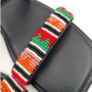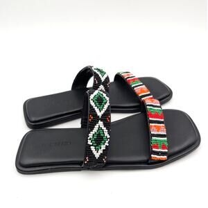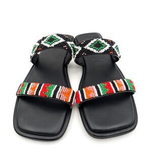 Farm Rio Beaded Slide Sandal Women's Square Open Toe Black Size US9 EU40