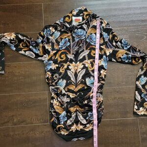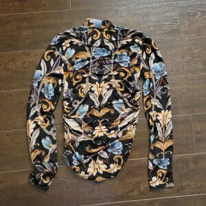 Farm Rio Black Flowerful Garden Jersey Blouse Womens S Mesh Floral Boho Chic