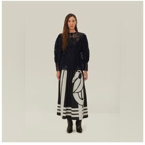 Farm Rio Black Guipire Puff Sleeve Blouse size small