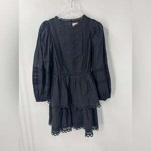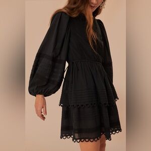 Farm Rio Black Lace Long Sleeve Mini Dress B2910