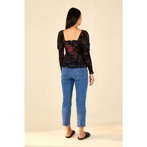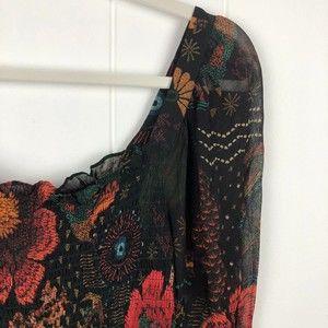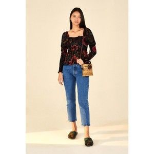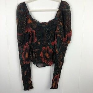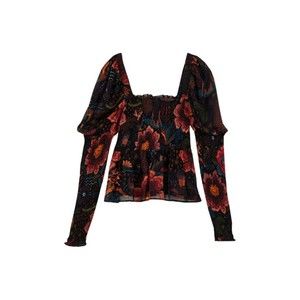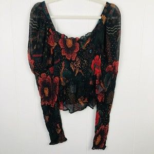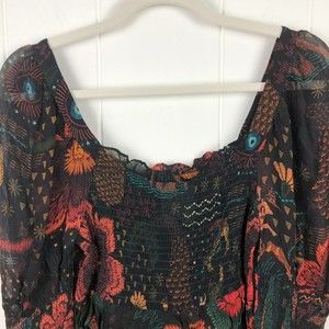 Farm Rio Black River Creatures Smocked Blouse X-Small