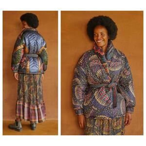 Farm Rio Black Wild Bananas Metallic Reversible Puffer Jacket Size Small