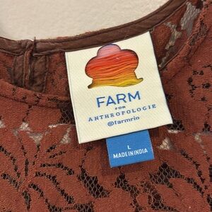 Farm Rio Blouse, size L. Great condition. Beautiful lace, pattern, and flowing design. Attached lining, high/lo hem, and 3/4 sleeves.