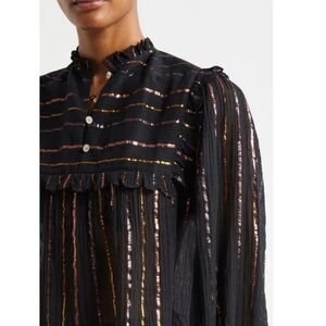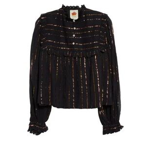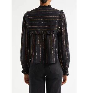 Elegant black top with shimmering gold accents. Perfect for any occasion.