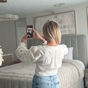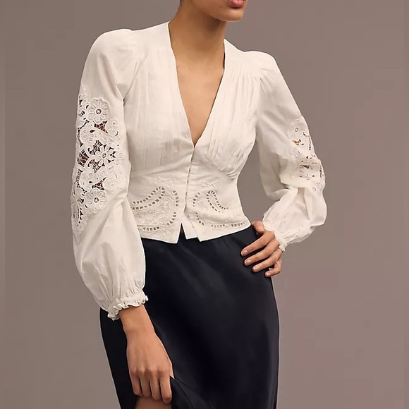 Farm Rio Long-Sleeve Lace Blouse