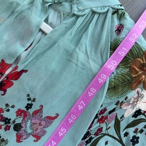 + Sheer floral-print maxi with soft teal inner slip (attached via hidden shoulder snaps)