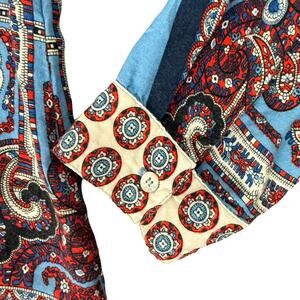 Farm Rio Blue Red White Paisley Collared Button Up Shirt Ruffle Mini Dress sz L