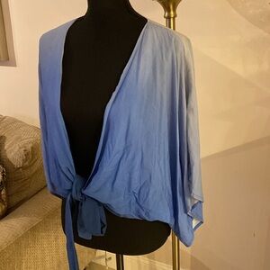 Farm Rio Blue Tie-Front Kimono Cardigan size L