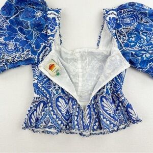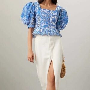 Elegant blue top with intricate patterns. Perfect for a stylish and comfortable look. Hardly worn.