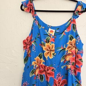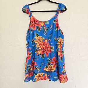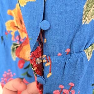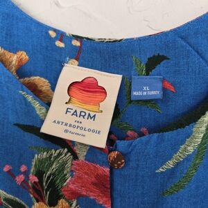 Farm Rio Blue Tropical Button Front Ruffled Top