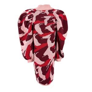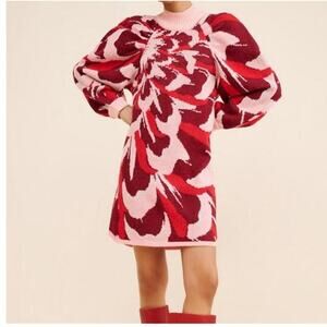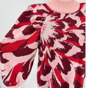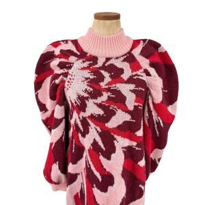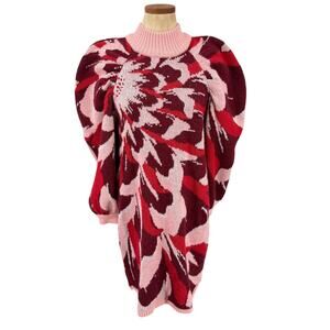 Farm Rio Bold Flower Sweater Knit Dress Dramatic Sleeves Pink Red Size Small