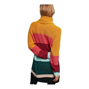 This season, go bold: Reach for the brightest, most eye-catching stripes, like the ones seen on this cozy turtleneck dress. The cheerful color will having you stylishly standing out against a backdrop of winter-white snow.