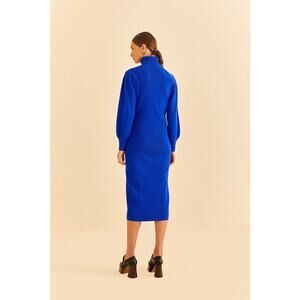 Farm Rio Bright Blue Ribbed Knit Heart Cutout Turtleneck Sweater Midi Dress NEW