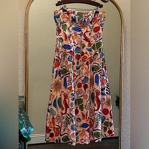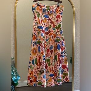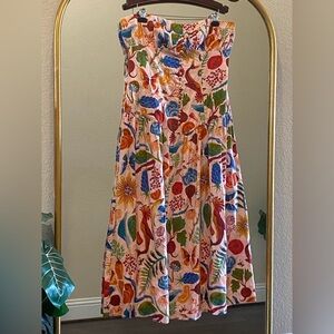 Farm Rio Bright Farm Strapless Linen Midi Dress Size L