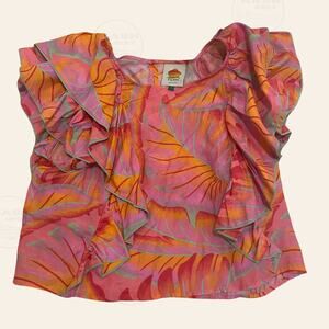 Farm Rio Bright Forest Set | Tropical Ruffle L Top, Smocked M Pants Resort Wear