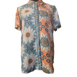 Farm Rio By Anthropologie M India Surf Shirt Linen Blend Brazilian Floral Hawaii