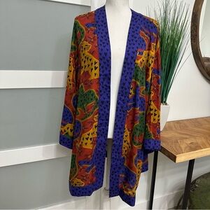 Farm Rio Cat Leopard And Heart Print Kimono Colorful OSFM Made India UNIQUE NWT