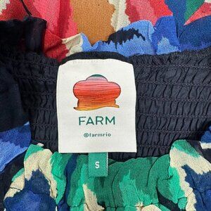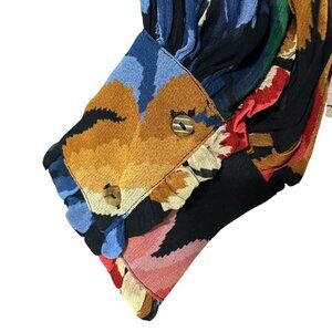 Farm Rio Chevron Forest Black Blouse Size Small Boho Festival Floral Statement