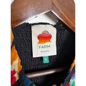 Farm Rio Chevron Tropical Forest Smocked Long Sleeve Blouse Black Small