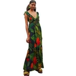 Farm Rio Cocoa Forest Maxi Dress Size Large NWT