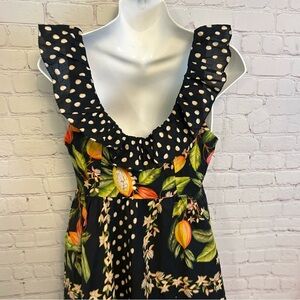 Farm Rio Cocoa Paradise Mini Ruffle sleeve dress New artsy cottagecore SML chic