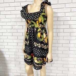 Farm Rio Cocoa Paradise Ruffle Dress • Tropical Ruffle Knee Length