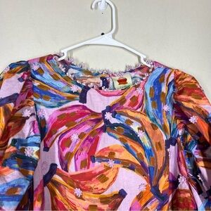 Farm Rio Colored Bananas Puff Sleeve Blouse Size Large
