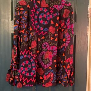 Vibrant shirt with a bold pattern. Features black, pink, blue, and orange designs. She’s a beauty. Sold out in stores.