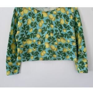 Farm Rio Colorful Teal Yellow Lemon Knit Sweater Fruit Raglan Cropped Sz L
