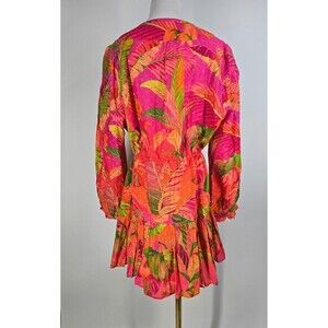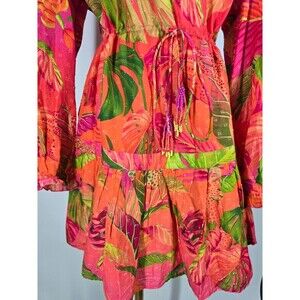 Farm Rio Colorful Tropical Mini Dress Reg. $298 Long Sleeve Resort Wear XL