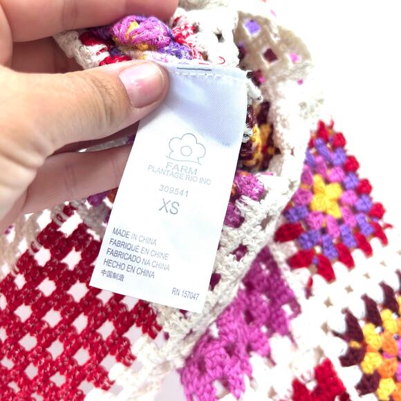 Farm Rio Crochet Granny Square Knit Cardigan Sweater Colorful XS Jumper