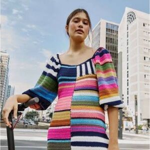 Farm Rio Crochet Stripe Mini Dress. In EUC, worn once. Sold out everywhere!