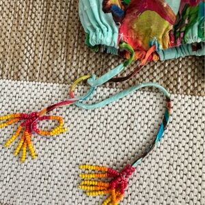 Farm Rio Size Small Crop Top with beaded button and tie details.