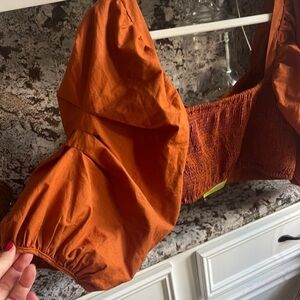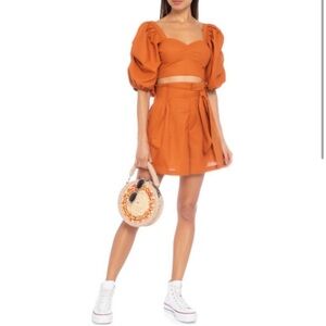 Farm Rio cropped pleated puff sleeve top