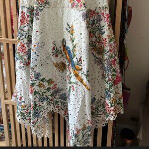 Farm Rio Delicate Forest Scarves Eyelet Asymmetrical Midi Dress off white , Larg