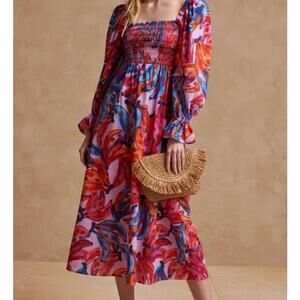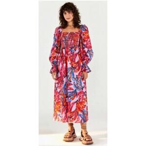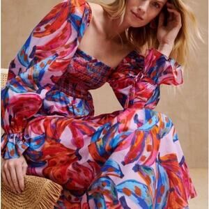 Farm Rio Dress 100% Cotton Bananas Smocked Maxi Women's Size XL Multicolor NWT