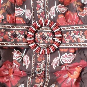 @pearsomi is the base color brown? Burgundy? And what is the measurement for the waist on the size small? TY