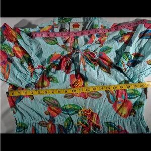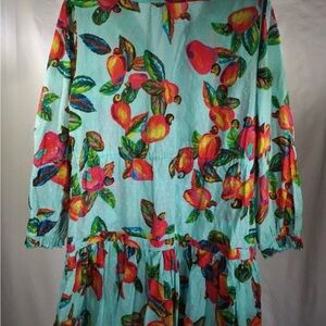 Bright floral print dress with a mix of vivid colors. Soft cotton , size Large unfortunately to small for me