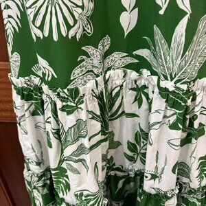 Worn once as shown in picture on the train. Size XS .Green white maxi dress by Farm Rio in perfect conditon.