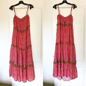 Farm Rio Dress Coqeuirissimo Metallic Palm Trees Maxi Summer Beach Pink M NWT