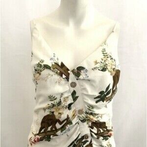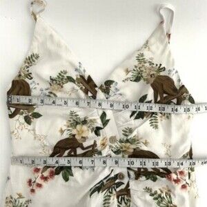 Farm Rio Dress L Ivory Floral Exotic Monkey Print Mini Brazil Tropical